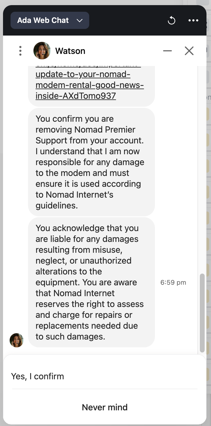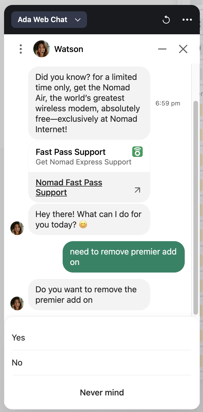Step 2: in the Nomad Live Chat box, type “remove premier add on” and then select the follow menu options